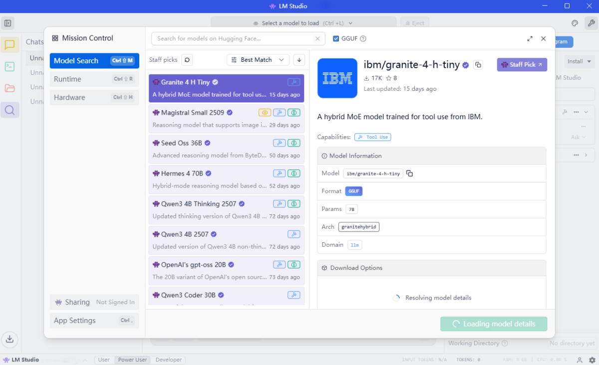 LM Studio支持从Hugging Face等流行仓库下载多种流行的 LLM模型,如Llama、MPT和StarCoder等。