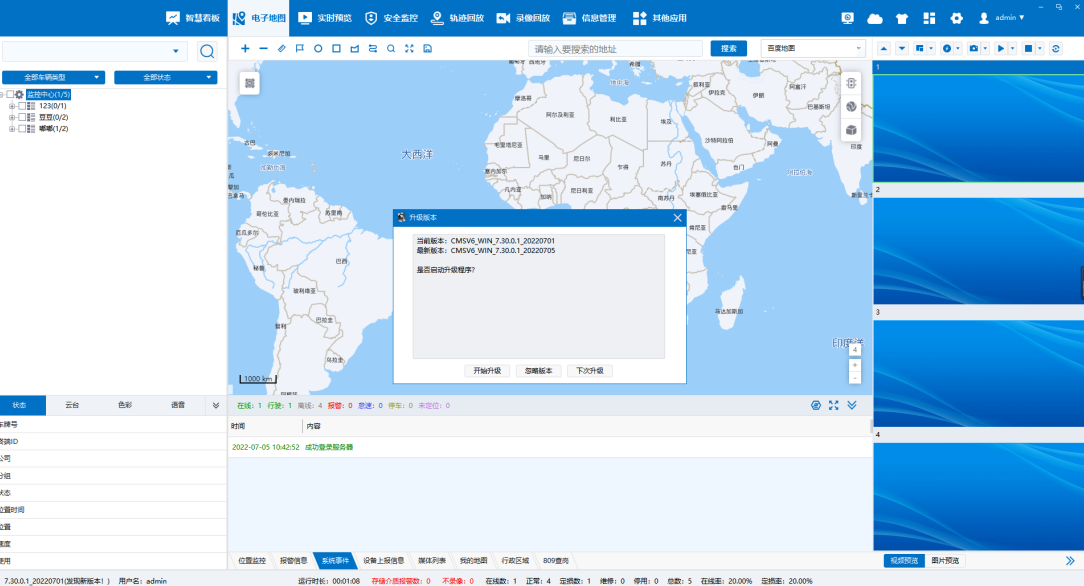 平台组成:分为服务器CMSServerV6和客户端CMSV6,是车载视频监控平台,客户习惯性称为CMSV6平台。