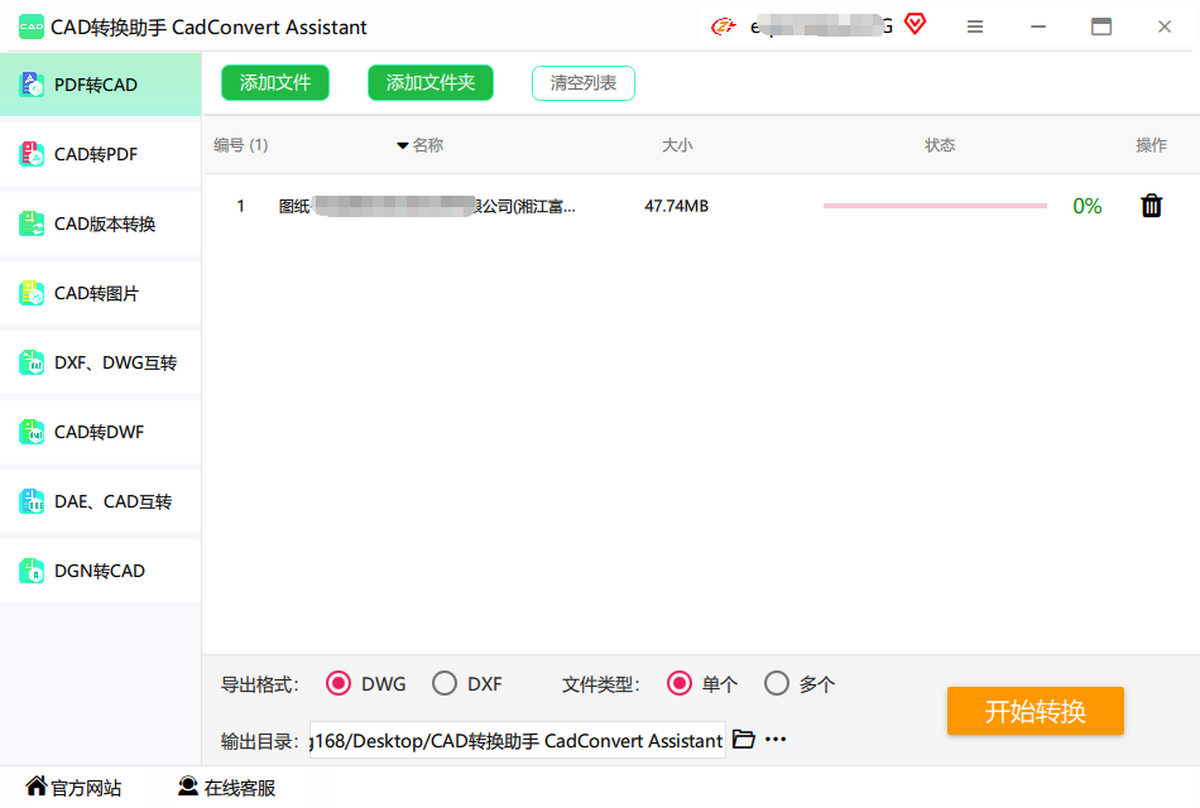 支持将dxf、dwg格式转换为pdf格式,支持批量处理,转换速度快,高保真转换
