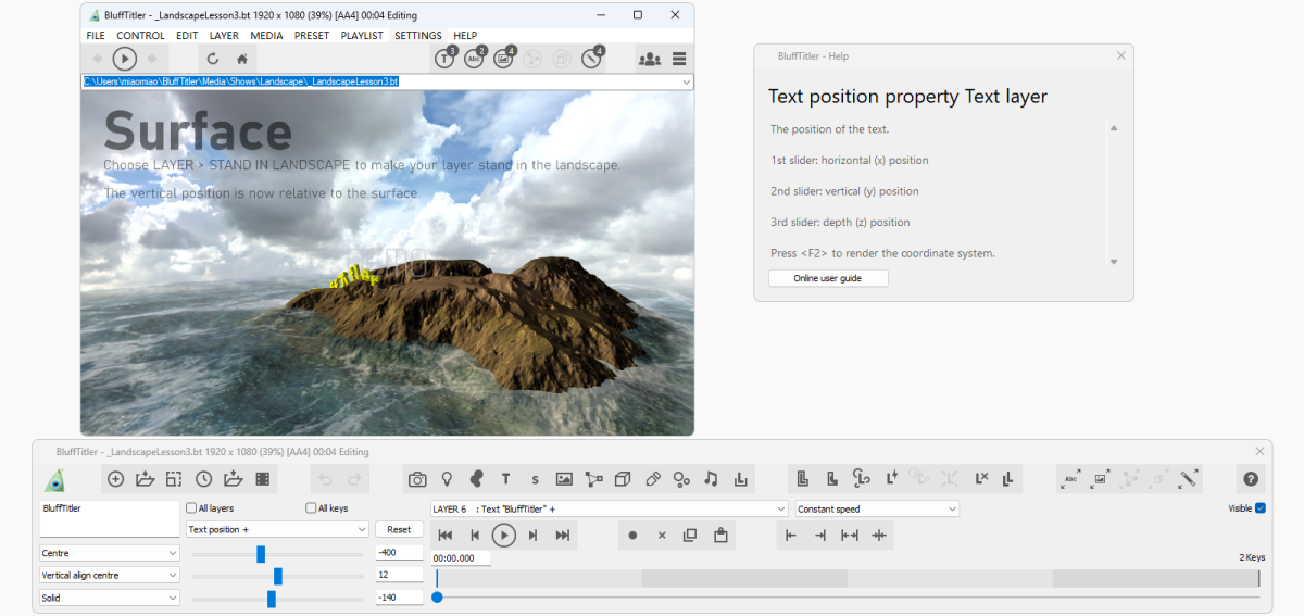 blufftitler是一款集创建,渲染和播放于一身的3D文本动画制作工具,内置的海量模板,支持大量的特效,比如各种纹理效果、各种扭曲效果、各种跳动飞行效果等,借助其超强的3D游戏技术实时渲染动画,通过自定义3D渲染引擎进行优化和创造,即可轻松获得专业的效果,并且你还可以直接使用提供的模板,在此基础上进行创造,更加的快速和便捷,从而方便您在各种地方和场合使用。最棒的是软件还拥有文字层、EPS层、图片层、视频层、等离子层、摄像机、音频层、模板层、滚动字幕层等13种图层,还为用户新增了大量的背景、纹理、雾范围、雾色、颜色强度、淡入淡出、和各种跳动飞行等效果,使用这些添加到你的动画设计制作中,可使你的设计更有创意,并还有丰富的实例模板供用户选择使用。