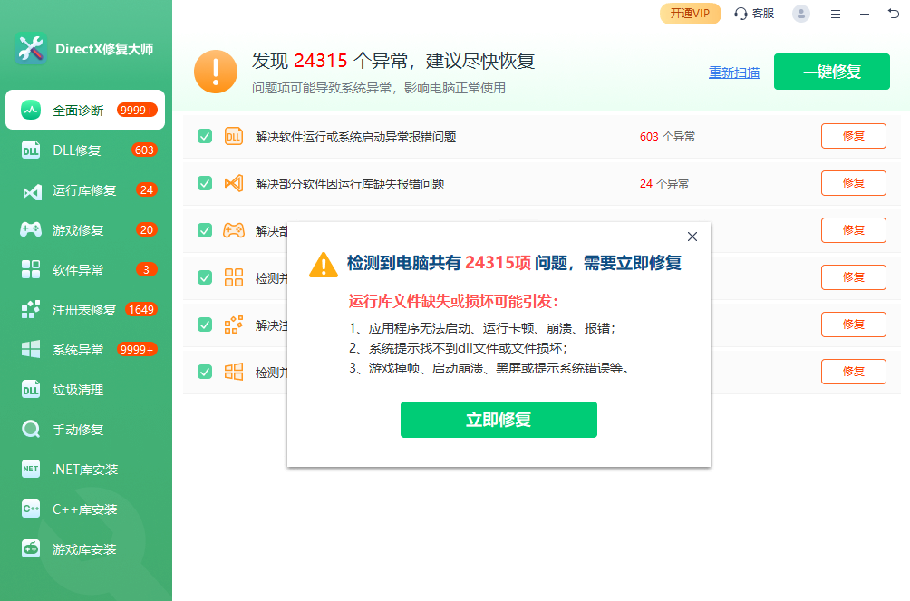 2.全面修复:众多应用和游戏的稳定运行依赖于 Visual C++ 运行库,该工具可智能检测系统中缺失的 VC 组件,并自动完成补全工作,保障应用程序流畅运行,为用户营造稳定的软件使用环境。