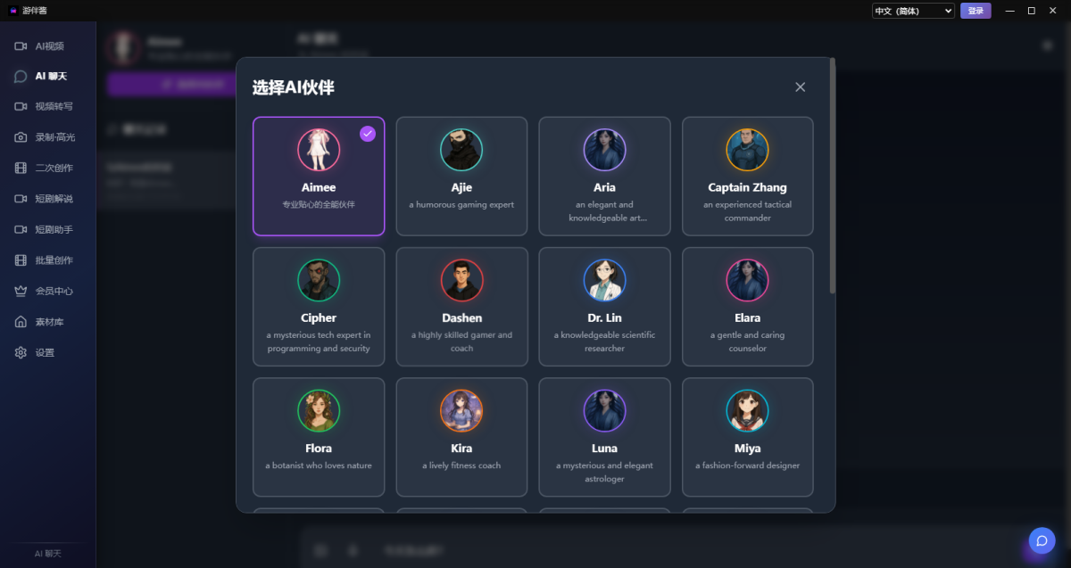 软件提供了多种预设角色模板,如"游戏教练"、"解谜专家"、"游戏叙事者"等,你可以基于这些模板进行个性化调整。