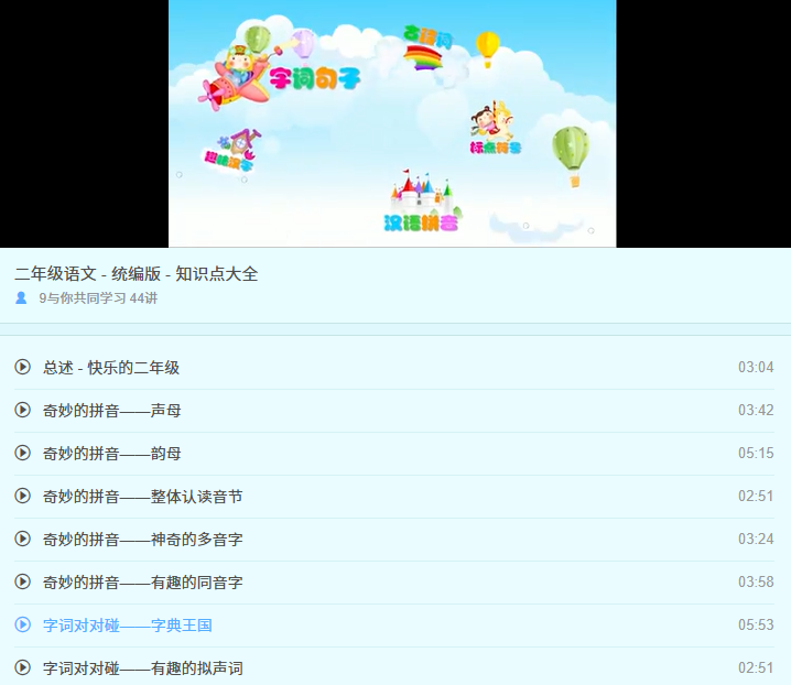 软件涵盖的知识点包括:快乐的二年级,奇妙的拼音——声母,奇妙的拼音——韵母,奇妙的拼音——整体认读音节,奇妙的拼音——神奇的多音字,奇妙的拼音——有趣的同音字,字词对对碰——字典王国,字词对对碰——有趣的拟声词,字词对对碰——辨字组词,字词对对碰——近义词,字词对对碰——反义词,字词对对碰——解词小妙招,字词对对碰——词语的分类和排列,字词对对碰——五花八门的成语,句子乐园——句子的种类,句子乐园——句式的转换,句子乐园——可爱的修辞,句子乐园——造句小妙招,可爱的标点朋友——分号,可爱的标点朋友——书名号,可爱的标点朋友——省略号,古诗学堂——《敕勒歌》,古诗学堂——《登鹳雀楼》,古诗学堂——《草》,古诗学堂——《宿新市徐公店》,古诗学堂——《望庐山瀑布》,阅读百花园——认识自然段,阅读百花园——阅读中常见的题型,写作魔法棒——描写一个人,写作魔法棒——描写一件事,写作魔法棒——学会写日记。